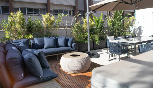 A cobertura de Nath Othoni é um refúgio urbano onde os moradores podem se reconectar com a natureza.